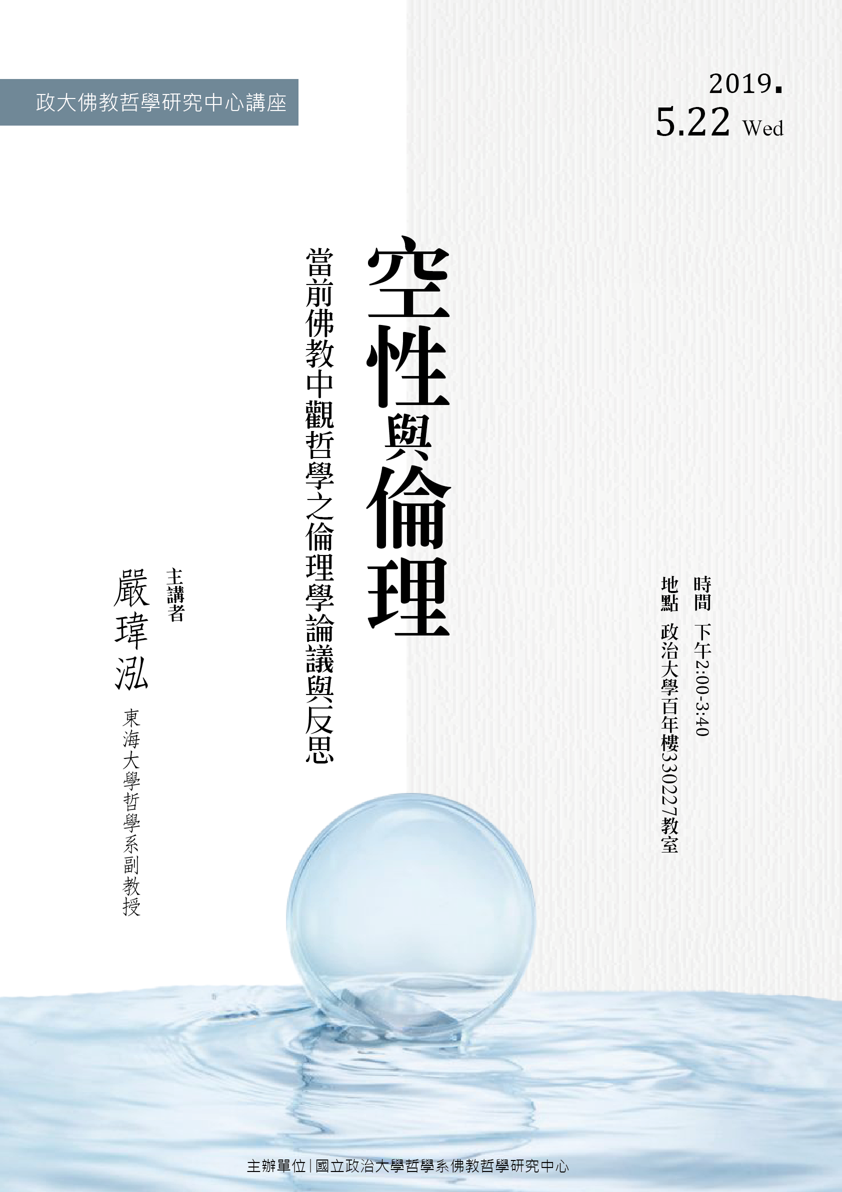 Venue│國立政治大學百年樓活動名稱:國立政治大學佛教哲學研究中心 系列講座